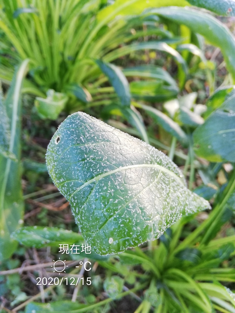 霜が初めて降りた日には、たった一度で死んでしまうお野菜もいる中、生き残った野菜達がいることにいつもすごいなあと、 驚く心持ちがします。